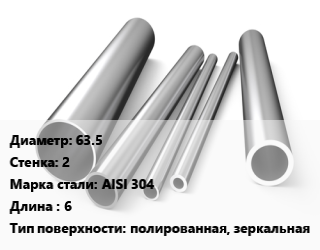 Труба нержавеющая 63.5х2 мм Сталь AISI 304 L=6 полированная, зеркальная