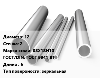 Труба нержавеющая 12х2 мм Сталь 08Х18Н10 ГОСТ: ГОСТ 9941-81 L=6 зеркальная
