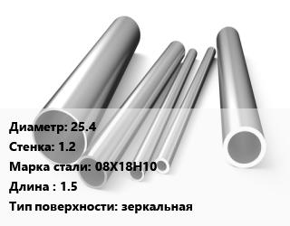 Труба нержавеющая 25.4х1.2 мм Сталь 08Х18Н10 L=1.5 зеркальная